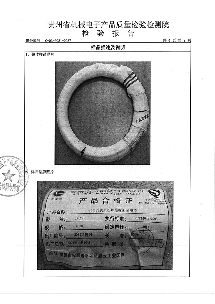 鋁芯交聯(lián)聚乙烯絕緣架空電纜 檢驗(yàn)報(bào)告
